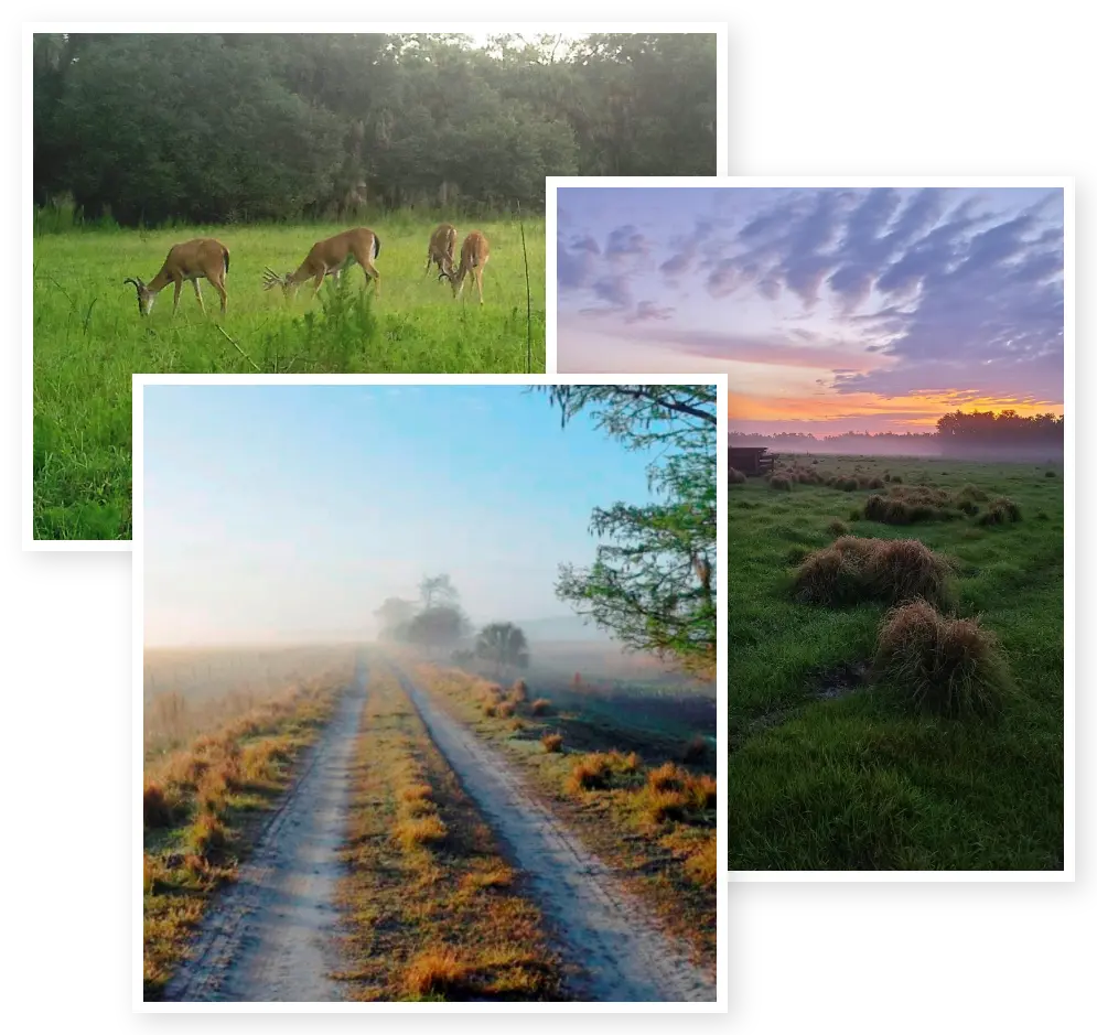 The property is located in a beautiful stretch of Florida landscape boarding the St. John’s River approximately 12 miles west of Melbourne, Florida. With our breathtaking scenery, not only does Heritage offer great exposure to deer, turkey, quail, ducks and fishing, it is an escape for families and friends to experience premier lodging, fine dining and private event space. We are extremely proud of our great traditions and world class experiences for our members. Our guides and staff are always available to assist our members and their guests with an amazing and unforgettable adventure.